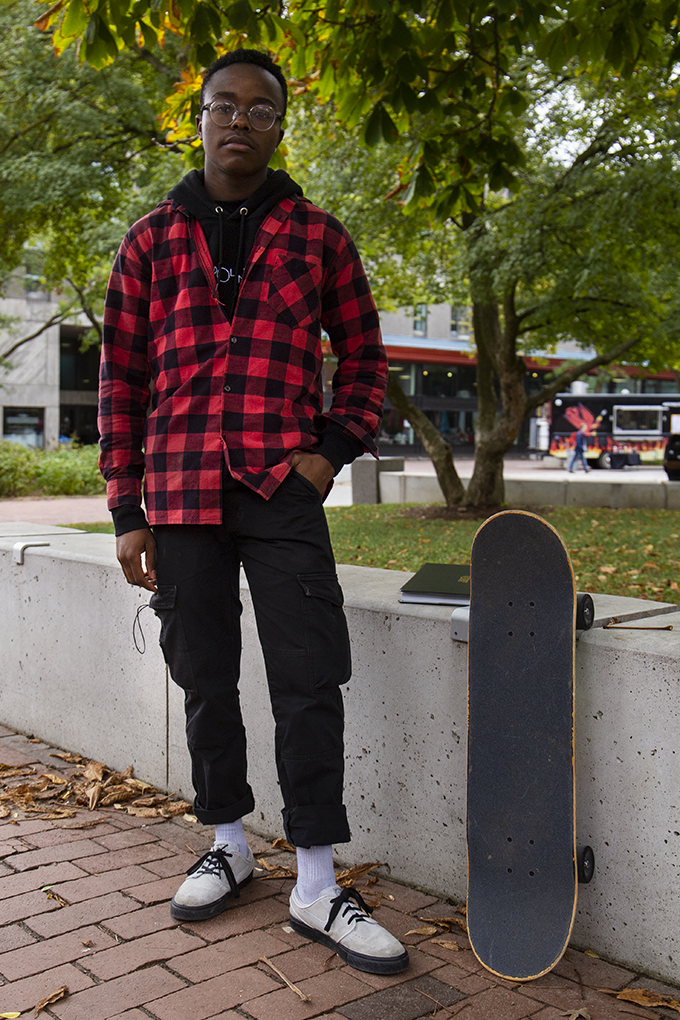 Here Xavier Gaines (@XavierGaines) expresses his individuality and style through DIY fashion. He says that he wears: “Regular shit with a twist. Stuff that anyone can have but how I flip it and make it unique to me.” Xavier also told us that he is inspired by everything and that anything can be inspirational if you see it. His fall statement pieces are comfortable jackets or hoodies.