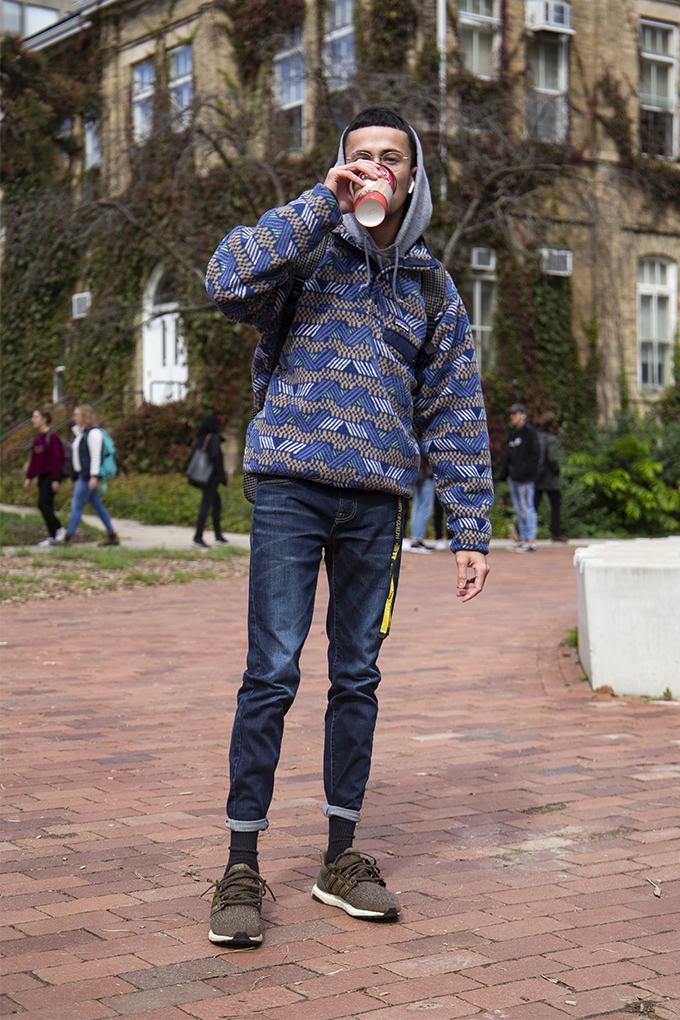 SUMMER COMING TO AN END may feel like a bummer to some, but the good news is that fall is always filled with endless outfit ideas and layering opportunities for students to have fun with. From pantsuits to puffer jackets to fresh outerwear trends and beyond, there’s plenty to get excited about. Guelph may not be New York, Milan, or Paris, but our campus is still fitted up this fall. Here are some of the can’t miss ’fits seen on Guelph Campus.