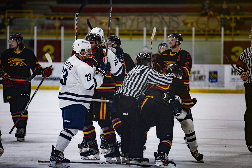 Gueplh and Toronto players fight during their match on Feb. 7.