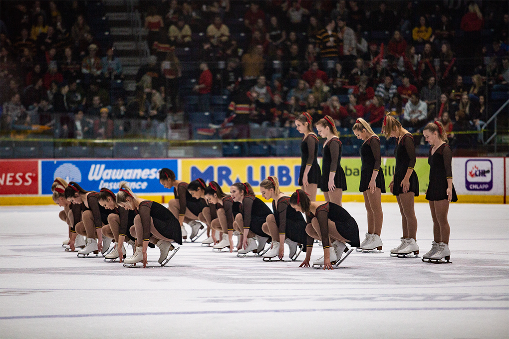 Figure skaters in position before doing their routine at Frosty Mug 2020.